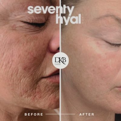 Seventy Hyal is an injectable Hyaluronic Acid skin booster that improves hydration levels within the skin and stimulates collagen and elastin which helps to improve the skin tone, texture resulting in a rejuvenated and glowing appearance.